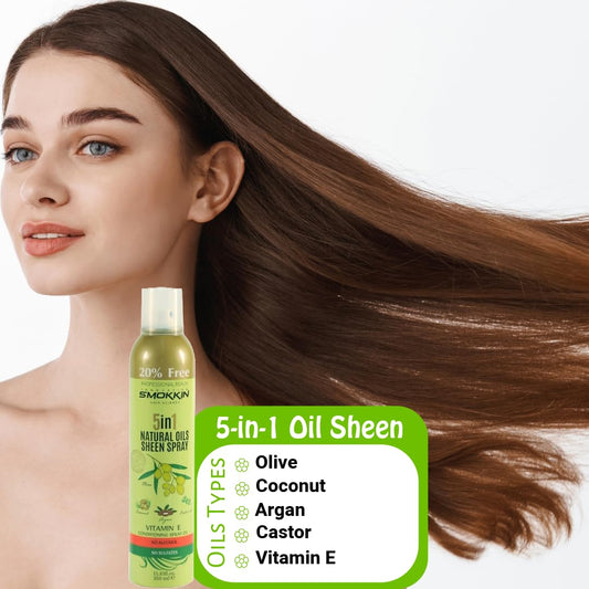 SMOKKIN 5-in-1 Natural Oil Sheen Spray - Hair Shine & Growth Mist with Coconut, Argan, Olive, Castor Oil & Vitamin E - Silky Smooth Finish - 350ml (11.83 FL OZ)